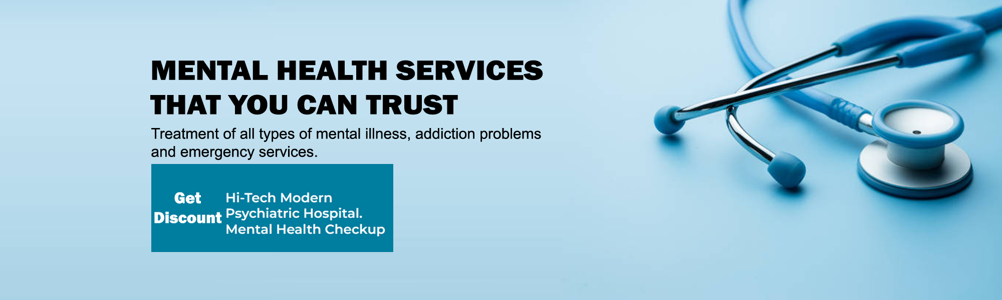 Treatment of all types of mental illness, addiction problems and emergency services.